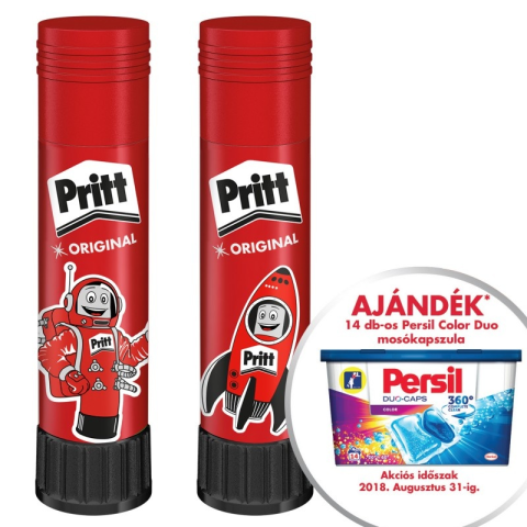 ISKOLASZEZONOS AKCIÓS CSOMAG PERSIL POWER CAPS MOSÓSZERREL 100DB 11GR. STIFT.A Pritt az első ragasztóstift a világon. A megalkotásához a rúzs adta az ötletet. A Pritt Stift 1969 óta ideális, gyors és pontos módja papírok, kartonok és fényképek ragasztásán