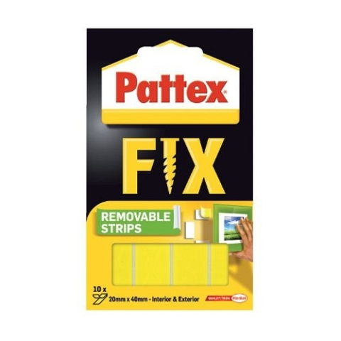 PATTEX Eltávolítható kétoldalas ragasztócsík. Tárgyak rögzítésére bel- és kültérben. 1 ragasztócsík akár 2 kg-ot is megtart. Nedvesség- és UV-álló. Nagy hőtűrés (+80 °C rövid távon). Maradványok nélkül eltávolítható. 10 csík/csomag.