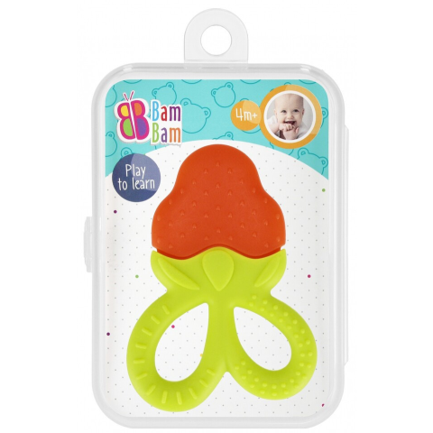 A BAM BAM eper 4 hónapos kortól gyermekek számára készült. A fogvágó ideális a kis kezek számára, és serkenti a látás és a tapintás fejlődését.