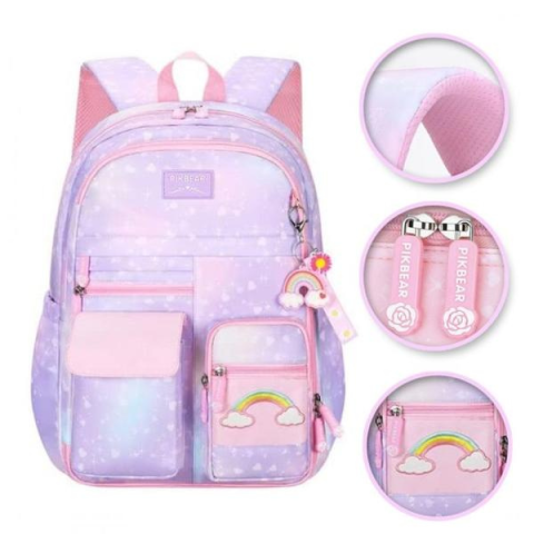 1 kép RAINBOW „Sweet” iskolai hátizsák, iskolatáska univerzális zsebekkel és kulcstartóval – PL161