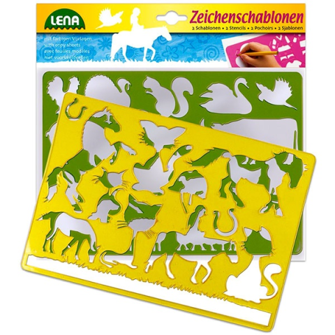 Dobd fel alkotásaid sablonnal rajzolt képekkel! A Háziállatok 2 darabos rajzoló sablon készlet kettő műanyag lapot tart magában, amikkel a farmon élő állatokat tudod megrajzolni. A sablon segít a körvonalak elkészítésében, és onnantól már csak szemet, szájat kell rajzolnod az állatoknak, és ki kell őket színezned. A sablonnal gyönyörű tájképeket is készíthetsz! Méretek: 26 x 19 cm.
