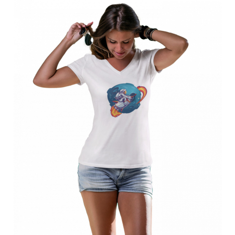1 kép Rakétás Űrhajós - Női V-Nyakú Póló