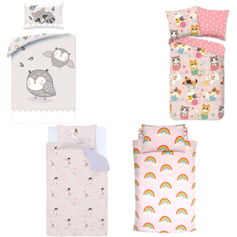 RANDOM Gyermek ágyneműgarnitúra LÁNYOS RGYL RANDOM Gyermek ágyneműgarnitúra LÁNYOS RGYL 80% pamut 20% polyészter 1 db paplanhuzat - 140 x 200 cm 1 db nagypárna - 70 x 90 cm 1 db kispárna - 40 x 50 cm A termék színe nem választható, raktárkészlettő