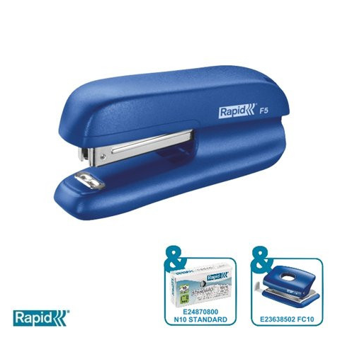 Tűzőgép, mini, No. 10, 10 lap, RAPID F5, kék - kompakt méretű, könnyen használható, kisméretű, hordozható tűzőgép acél tárral a hatékony tűzés érdekében - ideális otthoni és iskolai használatra - kapacitás: 10 lap - tűzési mélység: 38 mm - javasolt kap