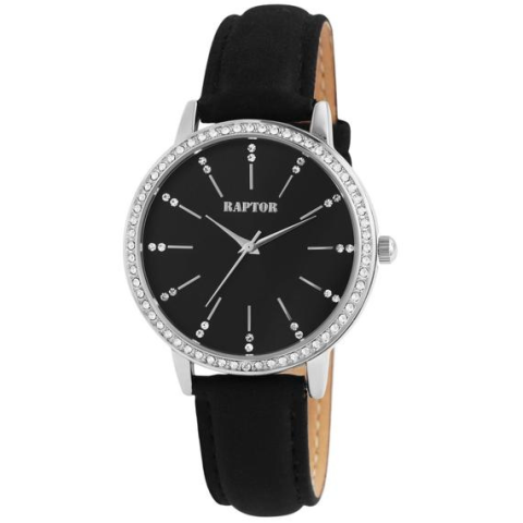 Raptor Brilliance – Női karóra valódi bőrszíjjal (fekete-ezüst) karóra termékleírás