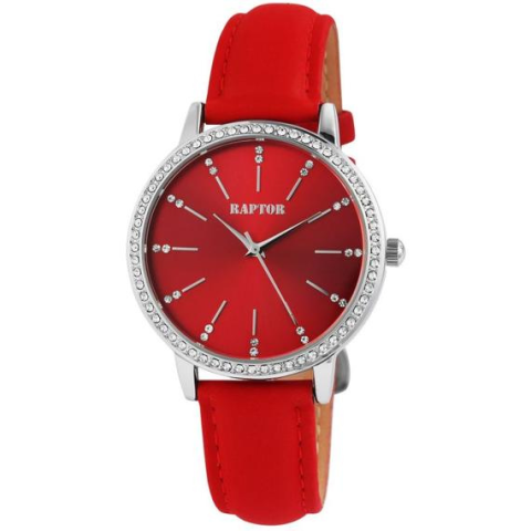 Teljes Raptor Brilliance – Női karóra valódi bőrszíjjal (piros-ezüst) termékleírás