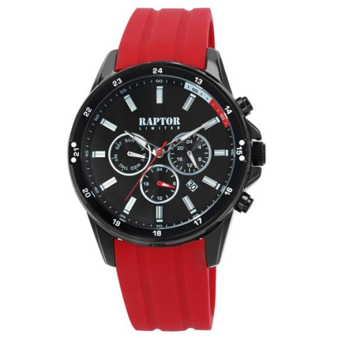 Raptor Limited Fillip – Férfi multifunkciós karóra szilikon szíjjal (piros-fekete) karóra termékleírás
