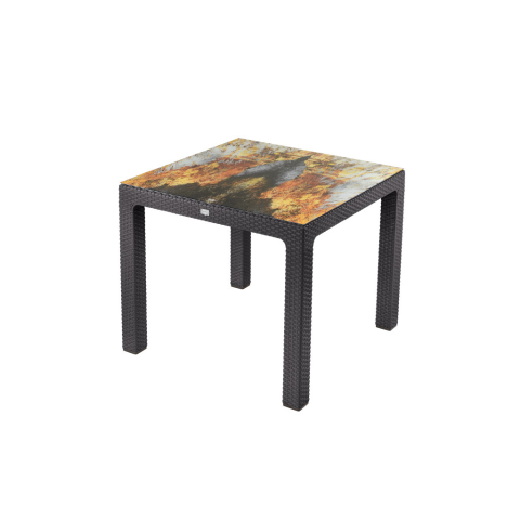 Rattan Asztal barna színben Színesüveggel 90X90Cm kerti bútor termékleírás