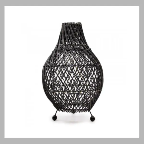 Rattan kerti lámpa fekete RTL-03Boho stílusú rattan asztali lámpa, amely természetes megjelenésével otthonos hangulatot teremt. A rattan anyagból fonott lámpa világítása gyönyörű mintákat vetít.Kézműves termék, ezért minden darab más és ezért egyedi.