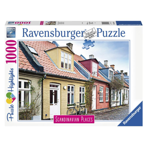 Ravensburger Puzzle 1000 db - Ház Aarhusban (53845) A skandináv utcák minden varázslatos bája felfedezhető ezen a Ravensburger 1000 darabos puzzle játékon. A kellemes színek és formák mellett megtapasztalhatjuk az északi emberekre jellemző nyugalmat és életstílust. Utazz el te is és ismerj meg új kultúrákat! A Ravensburger® már 1891 óta gyártja puzzle képkirakó termékeit. A több, mint 120 éves gyártói tapasztalat és a fokozott figyelem, amit a részletekre