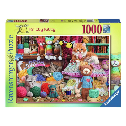 1 kép Ravensburger Puzzle 1000 db - Kötögetés cicákkal (06179)