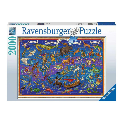 Ravensburger Puzzle 2000 db - Csillagképek (03788) A Ravensburger neve már hosszú évtizedek óta ismert az egész világon, mint a legkiválóbb minőségű puzzle játékok készítője. A kiváló termékminőség mellett a 2D-s és 3D-s puzzle kirakók rendkívül széles választékát nyújtja, mind a képi megoldások sokféleségében, mind pedig a puzzle részek darabszáma tekintetében. Miközben összerakja ennek a fényesen illusztrált kirakós darabjait, gondoljon arra,