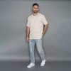 Regular Fit, bézs vastag anyagú 100% pamut póló, eldolgozatlan szárvéggel, környakkal és vágott alsó szegéllyel Modell: 185 cm/ 85 kg/ L-es méret