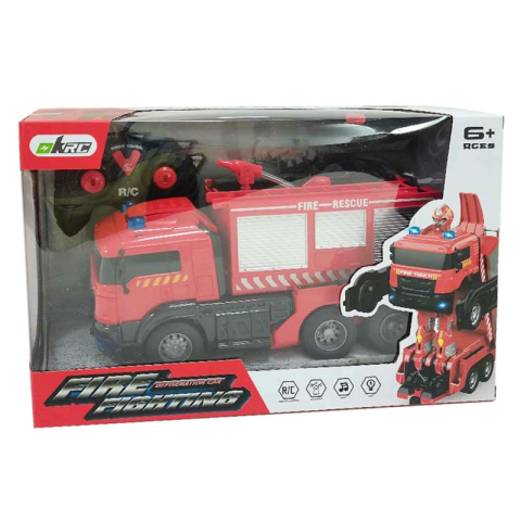 Korosztály: 6 - 14 év RC transzformer tűzoltó autó, vizet spriccelRobottá alakuló tűzoltóautóMicsoda meglepetést okozhatsz gyermekednek egy ilyen játékkal! A távirányítós transformers robot a gyerekszoba legmenőbb játéka lesz!Ez a piros tűzoltóautó nappal életeket ment, éjszaka pedig robottá alakul. A mellékelt távirányítóval előre-hátra és jobbra-balra vezérel