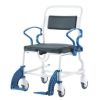Termék jellemzői: - aluminium keret, szivacsos háttámlával - Felhajtható kartámasz - kárpitozott ülőfelület, higiéniai nyilással - a vödör tartozék - a lábtartó állítható magasságú, felhajtható, eltávolítható - 4 bolygó kerék, a két hátsó fékezhető - mél