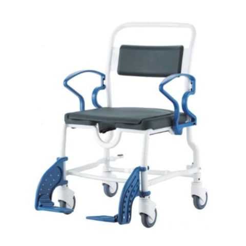 Termék jellemzői: - aluminium keret, szivacsos háttámlával - Felhajtható kartámasz - kárpitozott ülőfelület, higiéniai nyilással - a vödör tartozék - a lábtartó állítható magasságú, felhajtható, eltávolítható - 4 bolygó kerék, a két hátsó fékezhető - mél