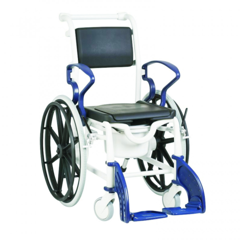 Termék jellemzői: - Önjáró zuhanykabinos kerekesszék 42 cm széles üléssel kis felnőttek számára. - Keskenyebb önjáró komódszék kisebb felnőttek és tizenévesek számára. keskenyebb komódnyílással és puhább háttámlával, mint a hagyományos önjáró székek. - 10