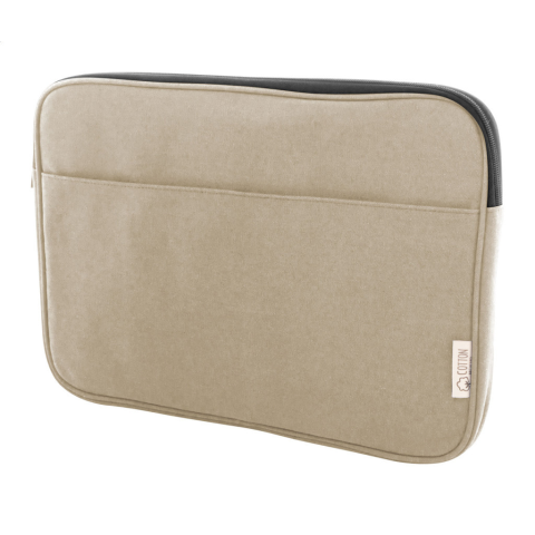 Teljesen párnázott újrahasznosított vászon laptoptáska cipzáras rekesszel és elülső zsebbel. Legfeljebb 15-os laptopokhoz használható. 70% újrahasznosított pamut és 30% RPET poliészter. Megkülönböztető újrahasznosított pamut címkével.