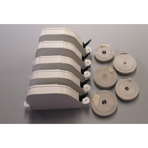 Redőnyautomata szett Tartalma: 5 db redőnyautomata, és 5 x 5 méter mini (14 mm) gurtni. Fehér vagy barna színben választható. Szállítási idő 2-3 munkanap.