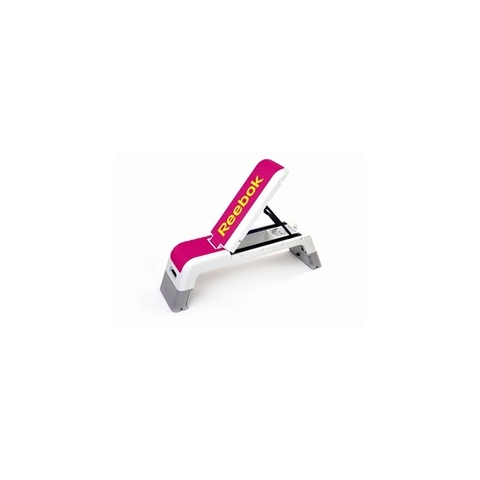 Reebok Magenta - fehér The Deck multifunkciós szteppad : A sztep pad lapja emelheto, fekvo gyakorlatok végezhetoek rajta. Kompakt fekpadnak tekintheto az eszköz. A Deckhez tartozik 2db elasztikus tube, mellyel kiegészíto gyakorlatokat végezhetünk rajta (lásd képek közt). Magassága 20cm és 35cm között állítható. A háttámla dolésszöge 3 pozícióban fixálható.Maximális terhelhetosége 110Kg.