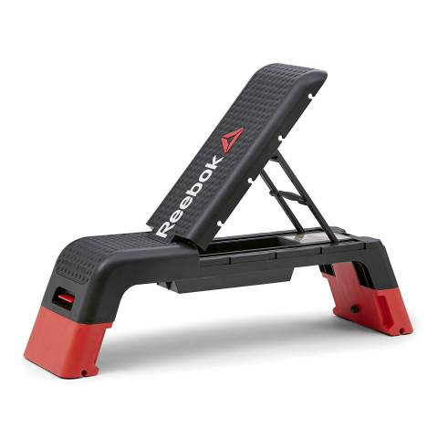A sztep pad lapja emelheto, fekvo gyakorlatok végezhetoek rajta. Kompakt fekpadnak tekintheto az eszköz. A Deckhez tartozik 2db elasztikus tube, mellyel kiegészíto gyakorlatokat végezhetünk rajta (lásd képek közt). Magassága 20cm és 35cm között állítható. A háttámla dolésszöge 3 pozícióban fixálható.