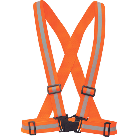 REFROX jólláthatósági pánt narancs • jólláthatósági kantár rugalmas szalagokkal • műanyag csatokkal elöl, mellrészen • teljes szélessége 4 cm, a fényviszavető csík 1,5 cm széles • bősége állítható max. 160 cm-ig • EN 13356: Nem szakmai használatú, jó l