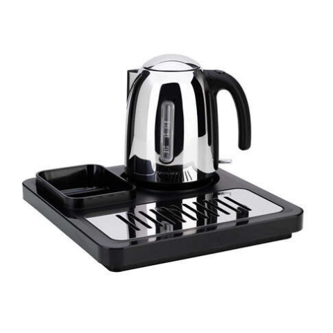 Regal Szállodai Vendég Tálca Vízforralóval - Kényelmes és Elegáns ☕ Ez a stílusos és praktikus szállodai vendég tálca tökéletes kiegészítője a vendégszobáknak. A beépített, 1 literes vízforralóval a vendégek könnyedén készíthetnek maguknak forró ita...