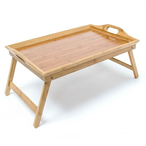 A bambuszból készült reggeliző tálca 2 fogantyúval rendelkezik, így biztonságosan szállítható. Az összecsukható lábak helyet takarítanak meg. Higiénikus és könnyen tisztítható. Az asztal magassága kihajtott lábakkal: 25 cm Tálca külső méretei: 52 x 33 cm