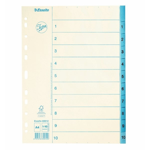 Regiszter ESSELTE A/4 karton 1-10 Egyszerű megoldás az iratok jobb és pontosabb tárolása és előkeresése érdekében.