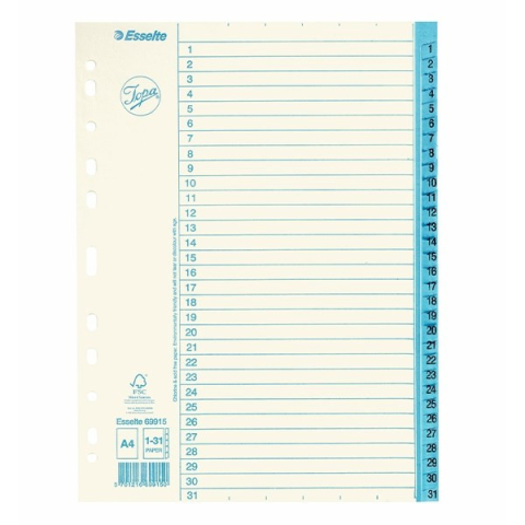Regiszter ESSELTE A/4 karton 1-31 Egyszerű megoldás az iratok jobb és pontosabb tárolása és előkeresése érdekében.