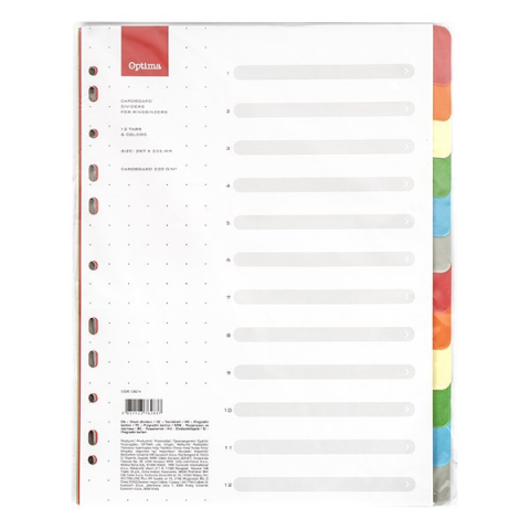 Regiszter OPTIMA A/4 karton 12 színű OPTIMA regiszter Méret: A/4 Anyaga: karton Típus: 12 színű