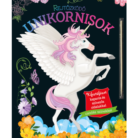 Fedezd fel az unikornisok csodálatos világát! A mellékelt pálcával kapard le a fekete réteget, és meglátod, milyen csodás, színes világ tárul eléd a lapokon! Emellett a színezésre váró oldalakon te magad is létrehozhatod a saját verziódat. Ha kész a mű, a