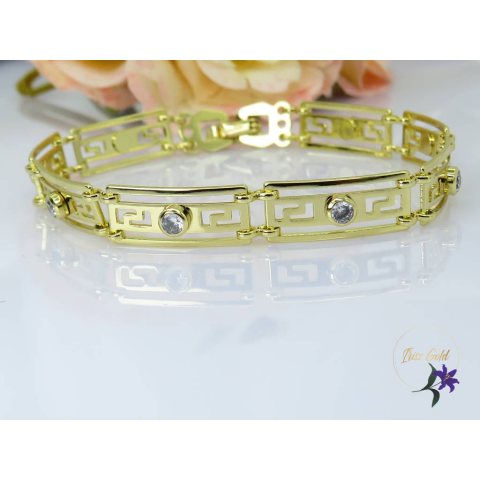 Antiallergén görögmotívumos karlánc középen kis fehérkővel Szin: 14K Méret: 19,5cm/8mm