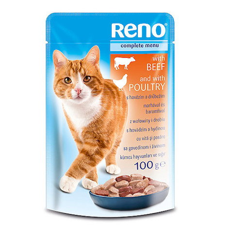 Teljes Reno Alutasakos teljes értékű macskaeledel marhával-csirkével 100 g termékleírás