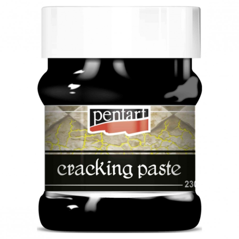Két komponensű, 3D repedő rendszer metál színekben. Vigyük fel a pasztát a megszáradt első komponensre. A paszta vastagsága befolyásolja a repedések mélységét és a repedések formáját. Alkalmazzunk hajszárítót a paszta szárításához. A paszta alá minden