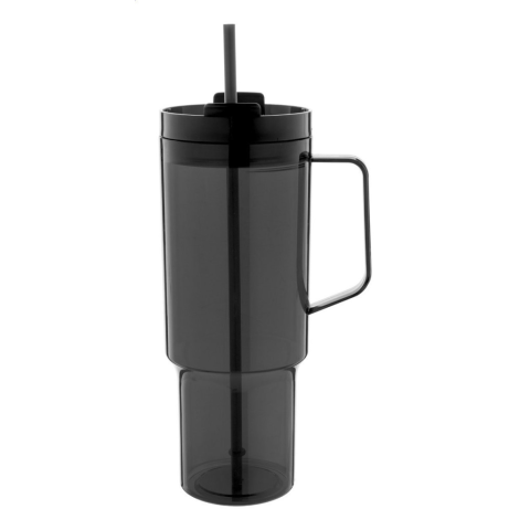 Egyfalú RPET utazóbögre, hozzáillő színű PP ivófedéllel és szívószállal. 1200 ml.