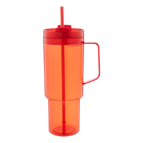 Egyfalú RPET utazóbögre, hozzáillő színű PP ivófedéllel és szívószállal. 1200 ml.