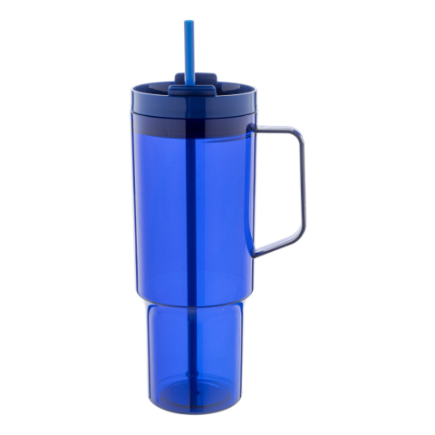 Egyfalú RPET utazóbögre, hozzáillő színű PP ivófedéllel és szívószállal. 1200 ml.
