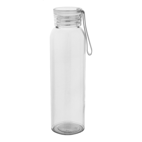 Újrahasznosított üveg kulacs, színben megegyező PP kupakkal és szilikon hordpánttal, 500 ml. Nem alkalmas szénsavas italokhoz.