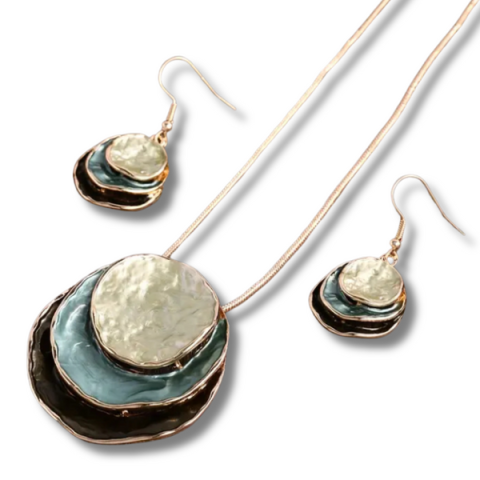Egyedi réteges zománcozott ékszer szett, bohém stílusú design, színes rétegekkel, tökéletes választás különleges alkalmakra és mindennapi viseletre