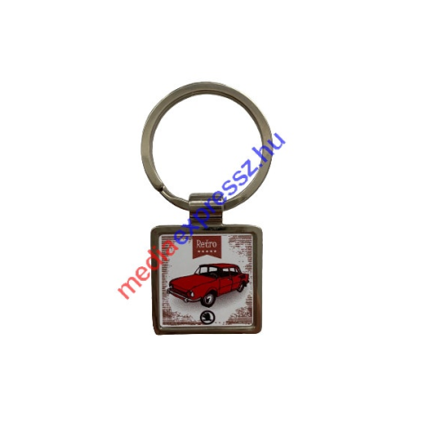 Retro autós (piros Skoda) kulcstartó kulcstartó árgrafikon