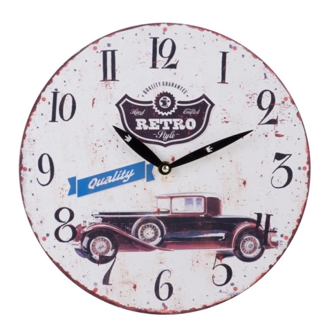 Retro nosztalgia autós műanyag falióra! Átmérő: 29cm 1db AA elemről működik (nem tartozék)