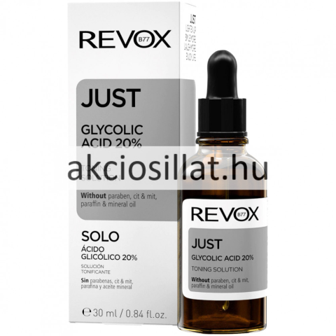 Revox Just Glycolic Acid Arcszérum 30ml REVOX JUST GLIKOLSAV 30ml Felgyorsítja a bőr megújulási képességét, felszínre hozva a friss, üde bőrt, amennyiben rendszeresen, rutinszerűen alkalmazzuk. A bőr fiatalosabbnak, üdébbnek látszik, a gyors sejtmegújulá