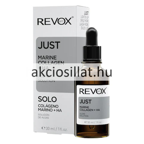 Revox Just Marine Collagen + HA Arcszérum 30ml Revox Just Tengeri Kollagén + HA szérum egy algás oldat arcra és nyakra, amely elősegíti a bőr hidratáltságát. A termék könnyű textúrájú formulája mélyen felszívódik a bőrben, és intenzív, hosszan tartó hidr