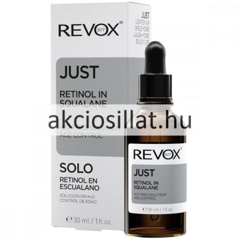 Revox Just Retinol In Squalane Arcszérum 30ml Revox Just Retinol In Szkvalén szérum egy vízmentes, tiszta retinol formula az arc és a nyak számára. A termék az öregedés látható jeleit célozza meg, úgy, mint a finom vonalak, ráncok és a megereszkedett bőr
