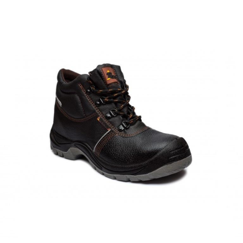 Acél orr (200J) és talpátszúrás védelem, mérsékelten vízálló marhabőr felsőrész. Fényvisszaverő csík az oldalakon és hátsó részen. Egészségügyi-kényelmi talpbetét. Olajálló, csúszásmentes kétrétegű talpszerkezet. Orrkopásálló első rész.