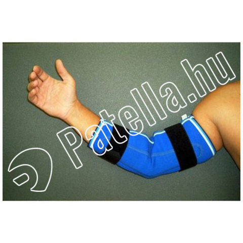 Adaptálható elasztikus könyökrögzítő. Adaptálható elasztikus könyökrögzítő. Neoprén anyagból készülő tok, amelyet állítható fém sínváz merevít, rögzítése a tépőzárakkal történik a felső végtagra. A könyökízületes sín flexiós és extenziós ütközőkkel van