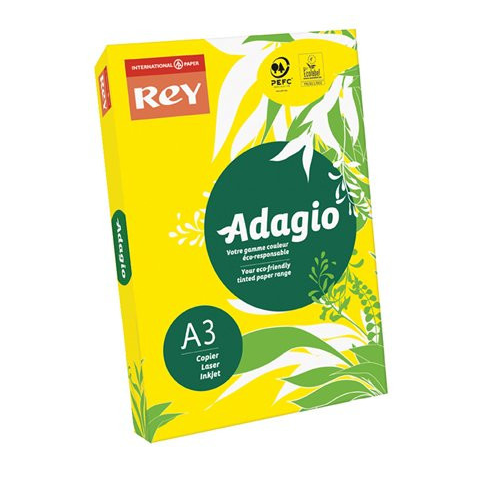 Másolópapír, színes, A3, 80 g, REY Adagio, intenzív sárga - kiváló minőségű, kétoldalas másolásra is alkalmas, anyagában színezett másolópapír - felhasználható fénymásoláshoz, tintasugaras és lézernyomtatókhoz - megkapta a PEFC tanúsítványát, megfele