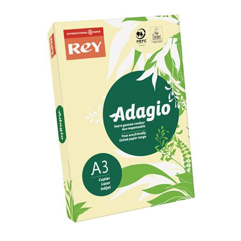 Másolópapír, színes, A3, 80 g, REY Adagio, pasztell sárga - kiváló minőségű, kétoldalas másolásra is alkalmas, anyagában színezett másolópapír - felhasználható fénymásoláshoz, tintasugaras és lézernyomtatókhoz - megkapta a PEFC tanúsítványát, megfele