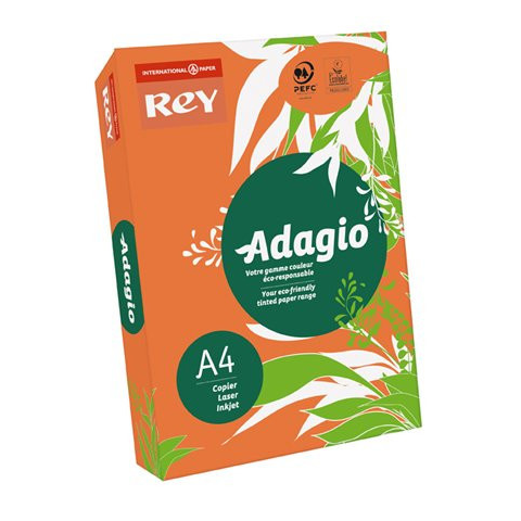 Másolópapír, színes, A4, 80 g, REY Adagio, intenzív narancssárga - kiváló minőségű, kétoldalas másolásra is alkalmas, anyagában színezett másolópapír - felhasználható fénymásoláshoz, tintasugaras és lézernyomtatókhoz - megkapta a PEFC tanúsítványát,